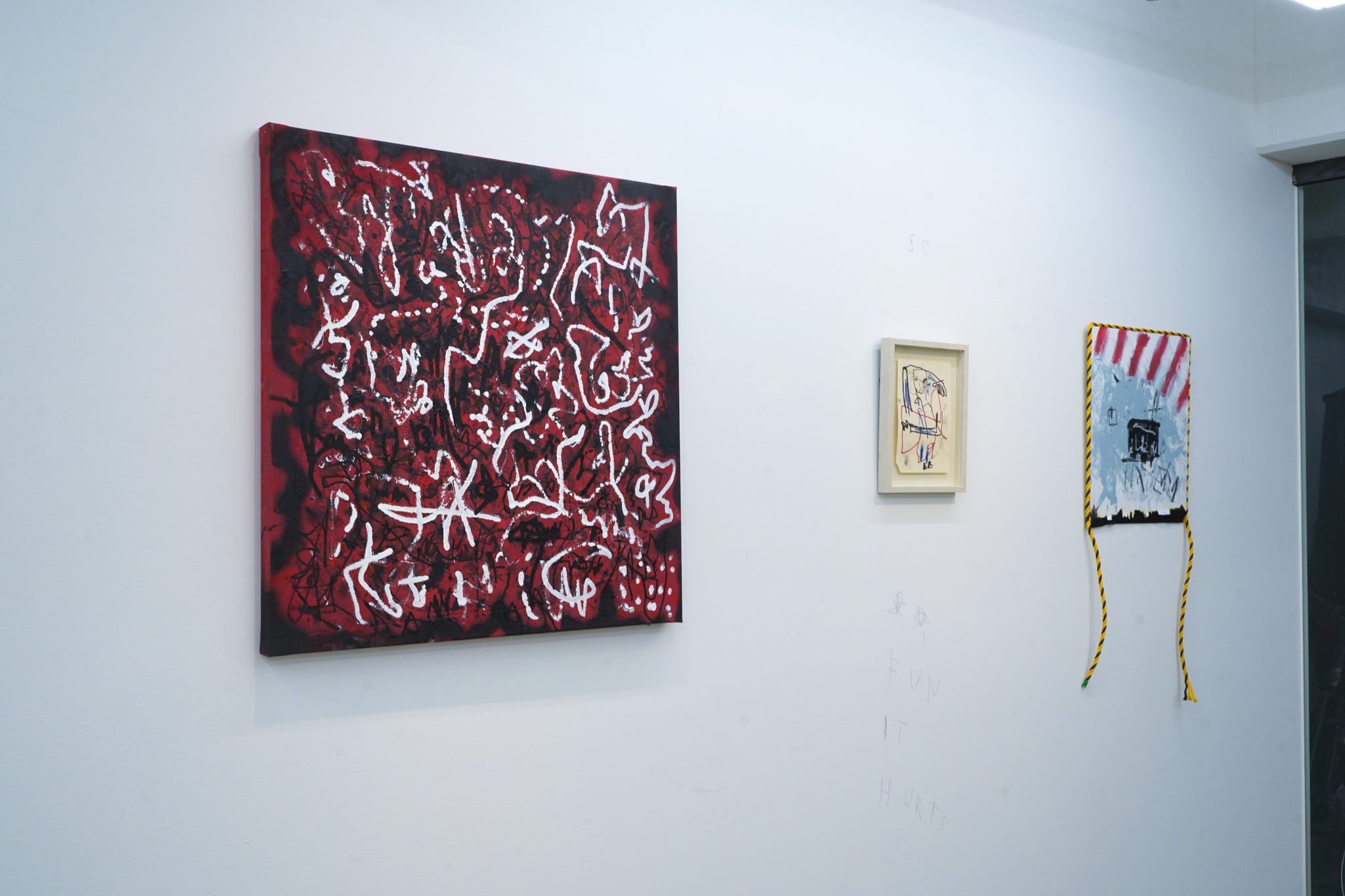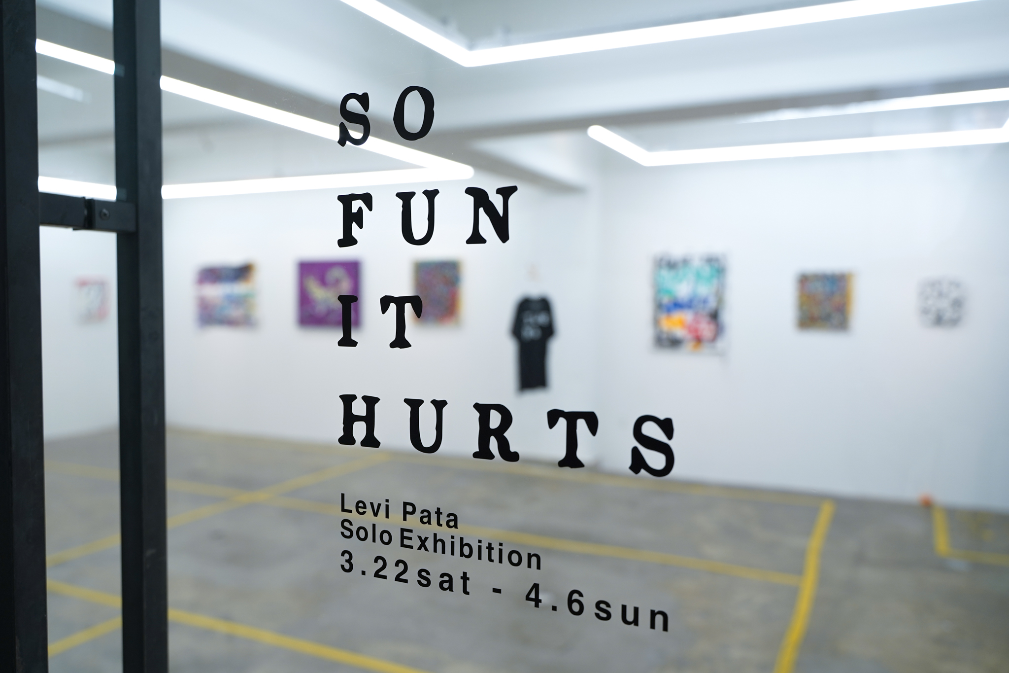 Levi Pataは、絵を描くことを活動の軸に置きながら詩も書く作家です。全てのモノに宿されたエネルギーをペインティングやドローイングで可視化するように、日々の暮らしの中でおりてきた言葉を詩にします。本個展『SO FUN IT HURTS(痛いほど楽しい)』は、10年前学生だった時に書いた詩の中の言葉。「HURTS(痛さ)」と「FUN(楽しさ)」を経験することは、人によって様々な意味を持ち、時に大きなエネルギーを生み出します。時が経つにつれ、自身の中で大切な意味を持つようになったこの言葉と経験。そこから生まれたエネルギーを、彼は色鮮やかにキャンバスへと落とし込みます。約1年ぶりの月極での展示。是非、この機会に皆様にご高覧いただけますと幸いです。また本展では、日本が世界に誇るファッションデザイナー宮下貴裕が手掛けるブランド TAKAHIROMIYASHITATheSoloist.とのコラボレーションTシャツの販売も行います。こちらもお見逃しなく。
